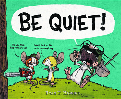 The three mice from HOTEL BRUCE are trying to write a picture book without words, but they can’t stop talking. Hilarious dialogue and clever drawings allow readers to explore the concept of wordless picture books and literary terms in a very fun way.