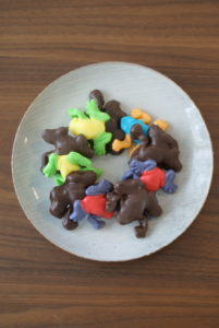 - Allow to dry at room temperature for an hour or for 10 minutes in the fridge, until the chocolate is set.