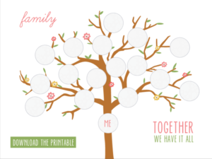 This is the perfect family tree for an only child. It even dates back three generations! Print out this tree and fill out with your grandparents’ and great grandparents’ names. Click HERE for the printout.