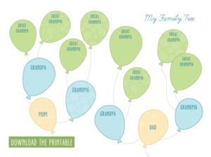 Print out this adorable family tree made up of all balloons! Hang on the fridge or gift the masterpiece to grandma and grandpa. Click HERE for the printout.