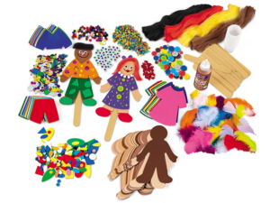 - Have kids create fun characters using our People Shapes Project Kit: comes with 12 People Colors, felt outfits, craft hair, wiggly eyes and more! Then have a conversation about why it’s so special that we’re all so different and unique, just like their characters!