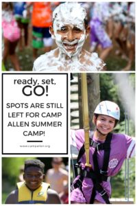 Camp Allen operates within the framework of four core values: Spiritual Growth, Positive Identity, Safety, and Fun. These values are a representation of who we are and why, as a summer camp, we exist. We strive to provide a unique environment for young people to cultivate friendships, experience personal growth, and learn about the unconditional love of Jesus Christ.
