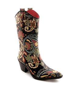 Corky’s Rodeo Snip Toe Rain Boots Corky’s original rubber boots feature a multi colored rodeo paisley print, a soft white lining, and a removable insole. $39.99 www.cavenders.com