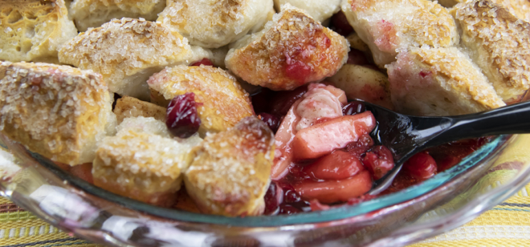 - In large bowl, mix apple slices, cranberries, lemon juice and vanilla extract.