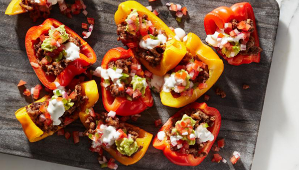 - Preheat the broiler. Spoon some beef mixture onto each pepper piece. Sprinkle with cheese and broil until the cheese melts, about 1 minute. Top with dollops of guacamole and pico de gallo. Thin the sour cream out with a little water and drizzle over the nachos.
