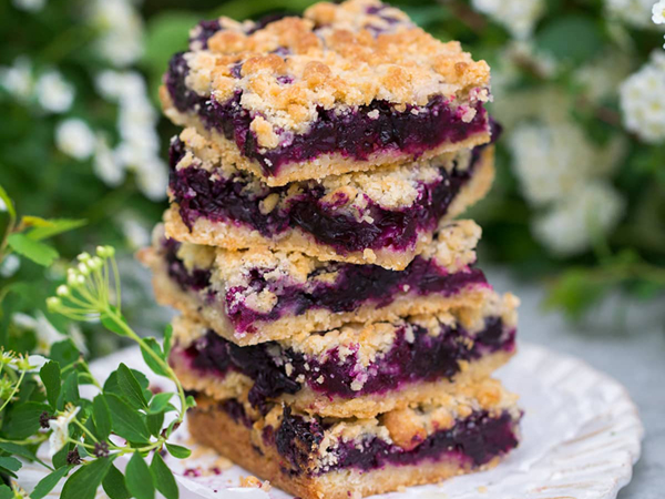 - Sprinkle remaining crumb mixture over berry layer.
