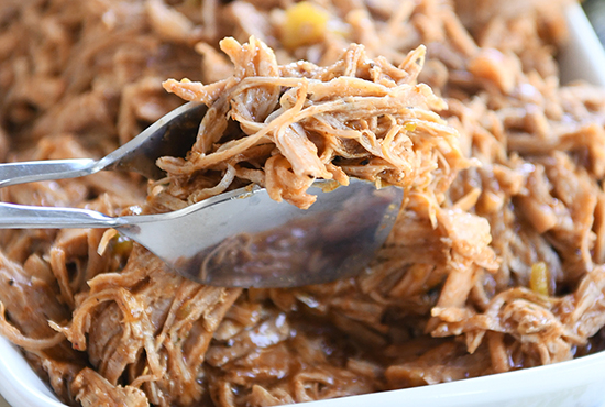 - Slow cooker: add the root beer/cola soda and the 1 cup green salsa/enchilada sauce to the insert of a slow cooker. Stir to combine. Add the seasoned pork. Cover and cook on low for 8-9 hours or high for 5-6 hours until tender. Transfer the pork to a cutting board or pan and shred. Discard all but 1/2 cup of the cooking liquid in the slow cooker. Add the shredded pork back to the slow cooker. Add the 2 tablespoons of reserved spices, red enchilada sauce, brown sugar, green chiles and green salsa/enchilada sauce and stir/toss to combine. Cover and cook on high for 15-20 minutes until heated through. Keep warm until serving.