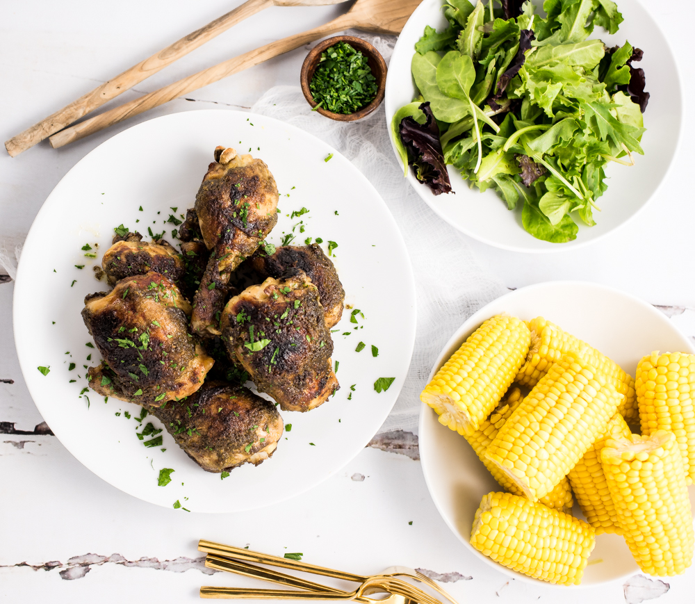 - Serve the chicken alongside a salad and fresh corn. Enjoy!