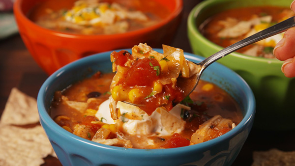 - Combine onion, spices, enchilada sauce, tomatoes, beans, corn, chicken and broth in the bowl of your Crock-Pot. Stir together to combine all ingredients. Set on high and cook for 3 hours, or until chicken is tender.