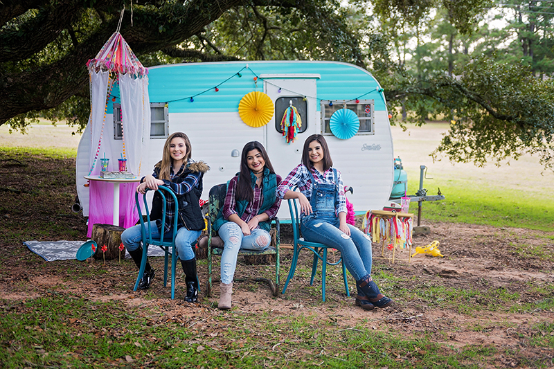 What a blast our team had with three of our HFM Kids Ambassadors! We spent an afternoon capturing photos for this month’s issue in the beautiful outdoors of Conroe with Brooke (left), Brianna (center), and Ryanne (right). Read about them on our website, houstonfamilymagazine.com. We think they had the most fun of all for our “Glamping” style photoshoot! A huge thank you to one of our treasured and talented photographers, Holly Young Photography, who scouted out the site, and provided an adorable vintage camper for our use! Holly and her husband have two kiddos who inspire her every day. Check out her story and beautiful work at www.hollyyoungphotography.com.