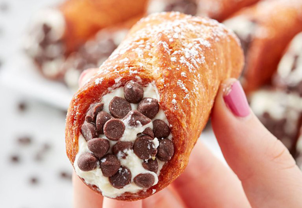 - In another large bowl, combine ricotta, mascarpone, remaining 1/4 cup powdered sugar, vanilla, orange zest, and salt. Fold in whipped cream. Refrigerate until ready to fill cannoli, at least 1 hour.