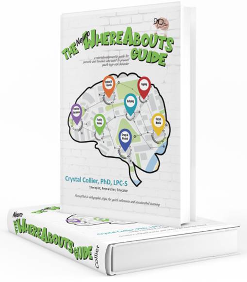 How to Prevent High-Risk Behaviors in Children. Imagine being able to prevent risky behavior in teenagers and college students by using developmentally sound science at key ages. In The NeuroWhereAbouts Guide, Dr. Crystal Collier advises adults who want to set healthy boundaries and limits regarding the many risky behaviors faced by today’s youth, and what those limits should look like at each phase of brain development. The 428-page book is written in infographic style for easy learning and was released today in paperback.