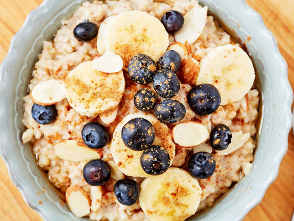 - Remove lid and stir in maple syrup and vanilla. Serve topped with more maple syrup, bananas, blueberries, and almonds.