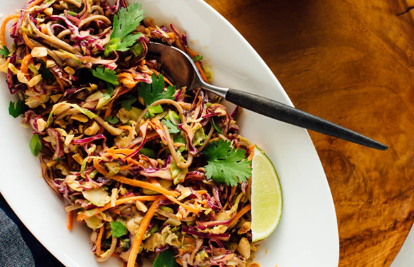 - Serve slaw with a sprinkling of chopped peanuts, torn cilantro and a lime wedge. Serve with sriracha on the side, if you’d like a spicy kick. This slaw keeps very well for a few days (covered and refrigerated). Before serving, wake up the flavors with a dash of lime juice or vinegar and more fresh cilantro.