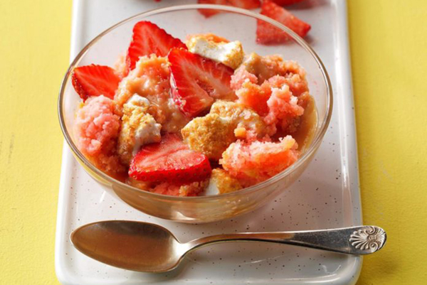 - Optional: Strawberry ice cream topping and sliced fresh strawberries
