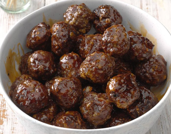 In batches, arrange meatballs in a single layer in greased air-fryer basket. Cook until lightly browned and cooked through, 12-15 minutes. Meanwhile, in a small saucepan, combine sauce ingredients. Cook and stir over medium heat until thickened. Serve with meatballs.