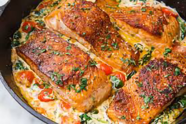 - Return salmon back to skillet and spoon over sauce. Simmer until salmon is cooked through, about 3 minutes more.