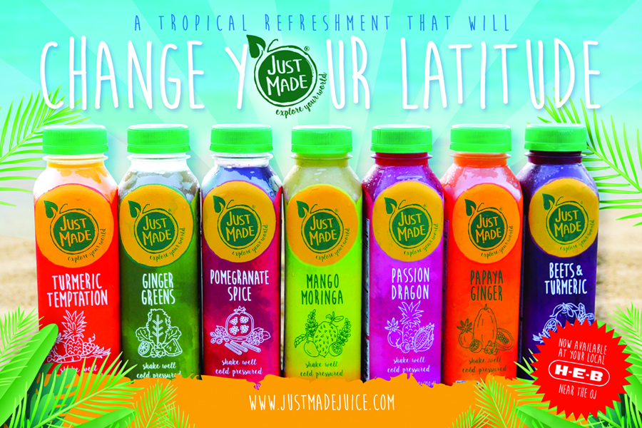Juicing at home is all the rage these days for many. However, the amount of produce needed to create a single juice, in addition to the tedious and time-consuming activity of cleaning a juicer, is pushing more consumers to buy fresh, healthy, on-the-go drink options like Just Made. In fact, HEB also sees Just Made as part of a growing trend and category, choosing Just Made as one of itsQuest for Texas’ Best finalist by H-E-B, from more than 600 companies in the competition, judged by H-E-B culinary professionals and executives.
