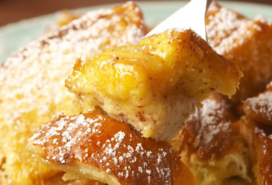 - Lightly grease the inside of Crock-Pot with cooking spray. Slice brioche into thick slices then quarter each slice. Place bread in Crock-Pot.