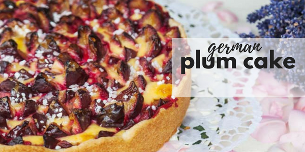 Pflaumenkuchen, sometimes known as Zwetschgendatschior is a wildly popular plum cake dessert in Germany. The yeasted dough bakes into something reminiscent of shortcake. The plums impart tart and sweet flavors as the fruit’s juices flow into the cake as it bakes. The recipe is classically made with ripe plums but this recipe works beautifully with other stone fruits like nectarines, peaches. If you have an array of these fruits handy, try this recipe with a combination of fruits.