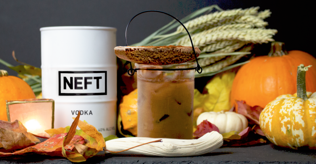 Combine all ingredients into a mason jar and stir lightly. Garnish with pumpkin
