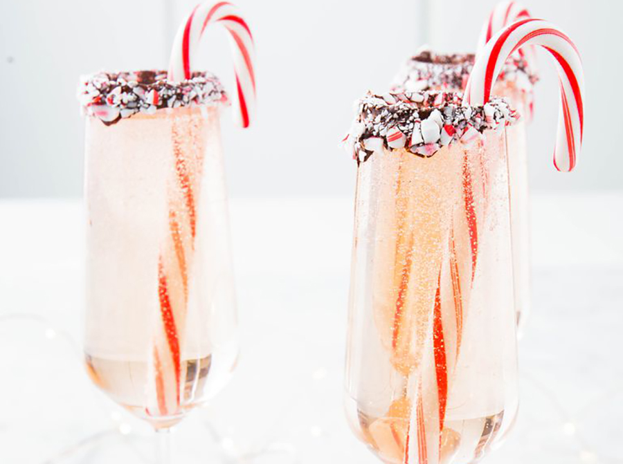 - Add an ounce of peppermint schnapps to each glass, then top with champagne or prosecco. Garnish with full candy canes before serving.