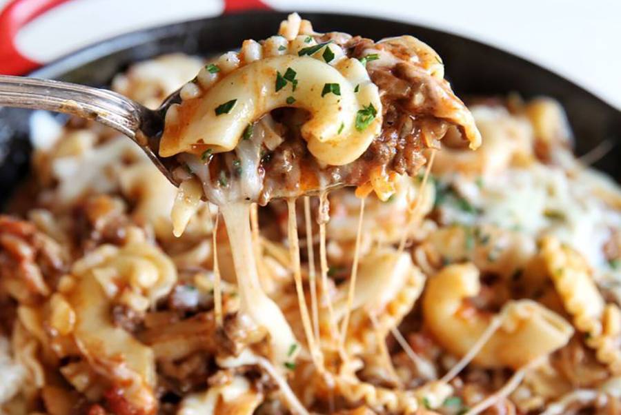 - Drain pasta and add to skillet over low heat. Stir in parsley and half the mozzarella, then quickly toss together to evenly coat pasta. Top with remaining mozzarella and cover with lid to melt cheese.