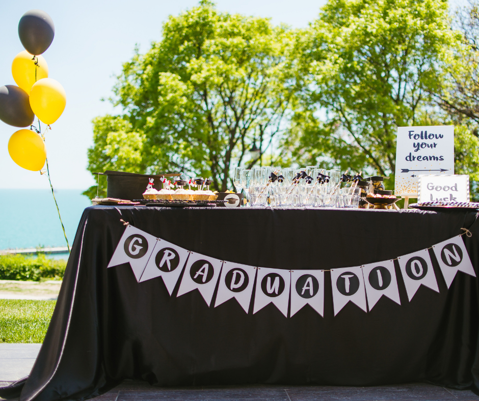 10. Hashtag & Geofilters – No party is complete without social media posts. Provide signs on the tables for your guests so they know what hashtag to use when posting pictures of your child’s graduation.