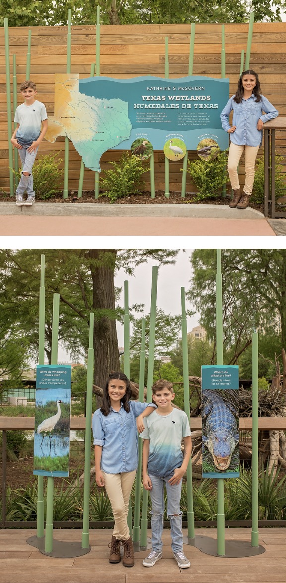 Explore the Houston Zoo’s new Kathrine G. McGovern Texas Wetlands habitat! As you embark on your first adventure through the new exhibit, you’ll meet a number of incredible species that are both native Texans and species being saved in the wild, thanks in part to your Zoo visit. While you may encounter some well-known animals like the bald eagle and American alligator, you’ll also catch a glimpse of a few feathered friends that might seem less familiar – the whooping crane.