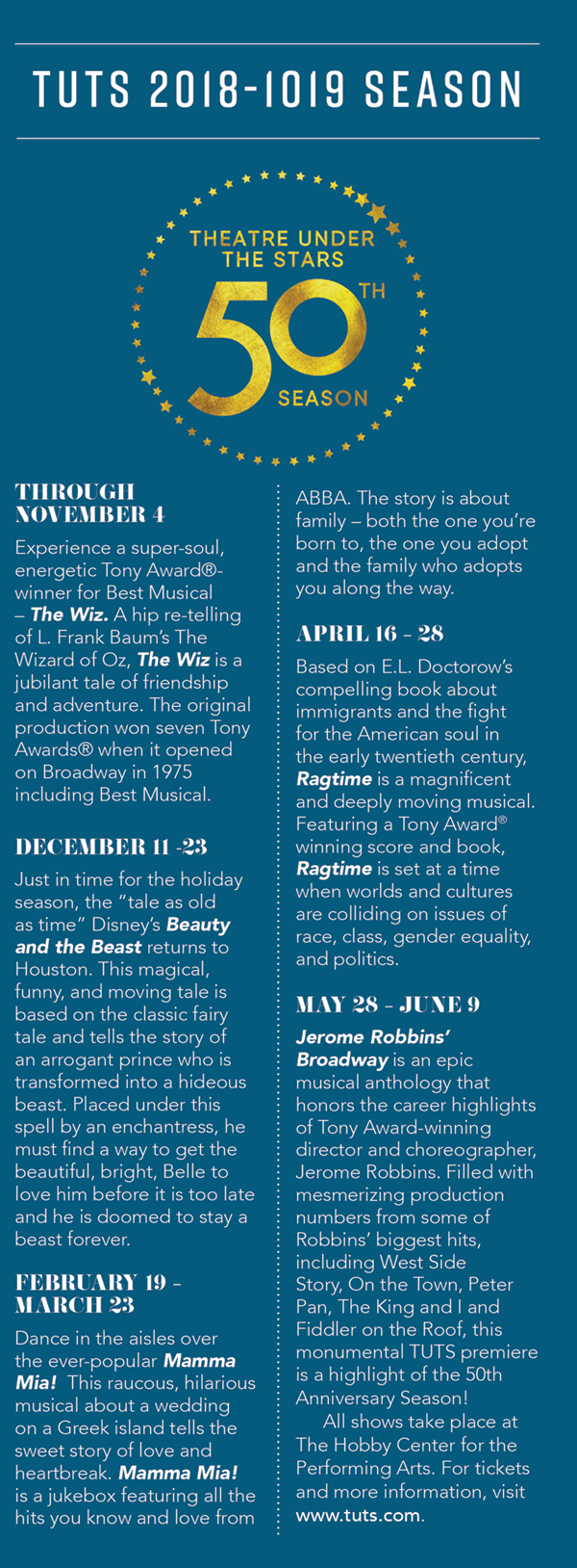 Theatre Under The Stars (TUTS) is celebrating their 50th Anniversary Season!