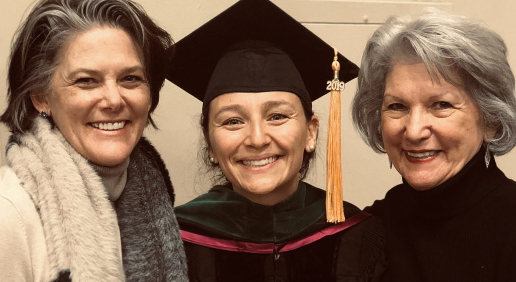 Photo above: Kim celebrating the graduation of her daughter Dr. Latesa Guerra along with her mother Beverly.