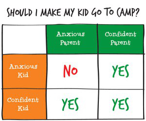 I get asked this question frequently, so I’ve created a grid to help parents make the decision. Just see what box you and your child fall in. The grid will tell you “yes” or “no,” and your camp decision is made. Simple as that!
