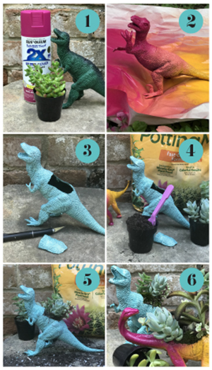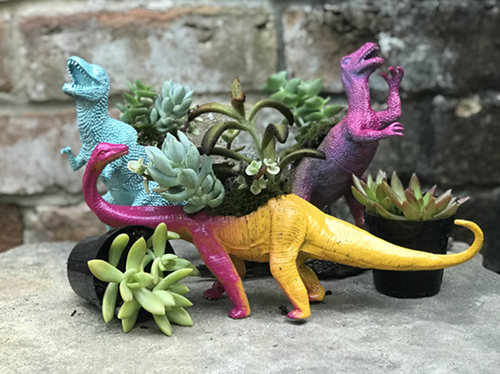 - Your dinosaur planter is complete. Find an area indoors to place your succulent-a-saurus creations. You could even make them a smaller part of a larger terrarium. Enjoy!