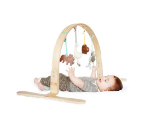 New babies will love this play gym! Toys are both wooden cut-outs & hand-knit organic cotton with rattles inside. They can even be detached and used wherever else you might need some extra entertainment. $135. Finnandemma.com