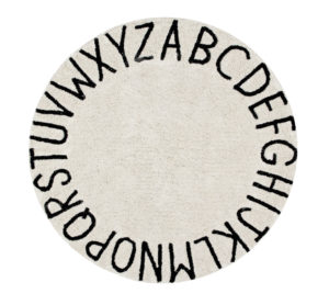 I fell in love with this gorgeous rug and I know you will too! The ABC pattern on this quality, machine washable and anti-allergen rug is perfect for any nursery. $200. Lorenacanals.us
