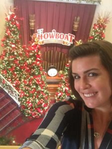 During the second night of my trip, I had the pleasure of coming aboard the Branson Belle Showboat on Table Rock Lake. Walking aboard took me back in time with the ornate hand railings and décor. Complete with Christmas trees, lights and decorations throughout. The show featured a three-course meal, variety show, and opportunity to sightsee along Table Rock Lake. My favorite part was watching Christopher James put people from the audience on the spot with games and other entertaining activities. My kids would love this kind of thing.
