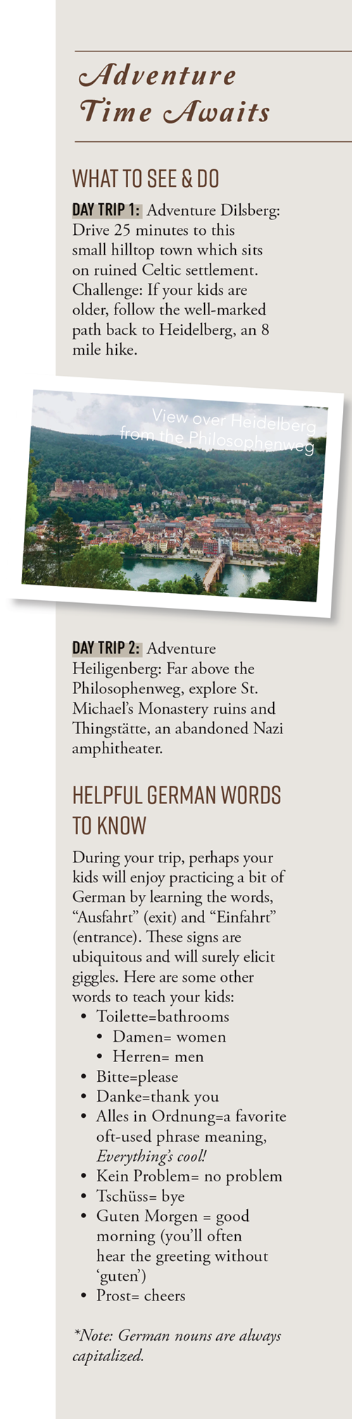 We lived in Germany as a young American expat couple and have since traveled back numerous times to visit our favorite city of Heidelberg. Yet, I still felt a thrill this past summer when our family drove across the bridge toward Bizmarckplatz, the main transport square, into the heart of this medieval city, which was largely spared in WWII. Perhaps it’s the magical castle on the hill which makes it so treasured, or the peaceful Neckar River flowing past the city through the valley, or its bustling pedestrian zone. It certainly doesn’t hurt that Heidelberg is home to Germany’s oldest university, contributing to its charming aura with students and professors walking about. Truly, the combined total of Heidelberg’s individual features are what make her special today as when the song, “I Lost My Heart in Heidelberg” was written in the 1920s.