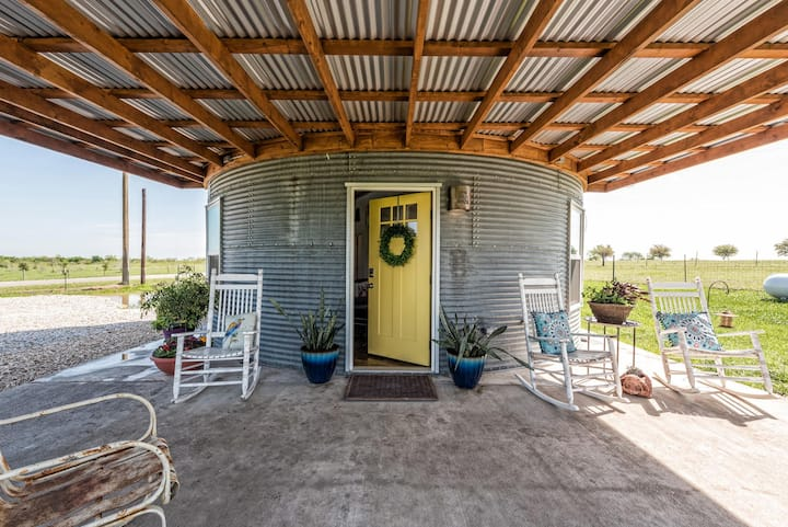 This just proves that there is a vacation for everyone! Enjoy The Silo House at Laughing Llama farm, secluded and private, conveniently located within 25-30 minutes to everything Waco, Temple & Belton have to offer. The Silo House is a renovated grain bin moved from a family farm 50 miles away to The Laughing Llama Farm in Troy. Plan for a weekend of fishing, rocking, grilling and watching the llamas graze as your cares melt away.