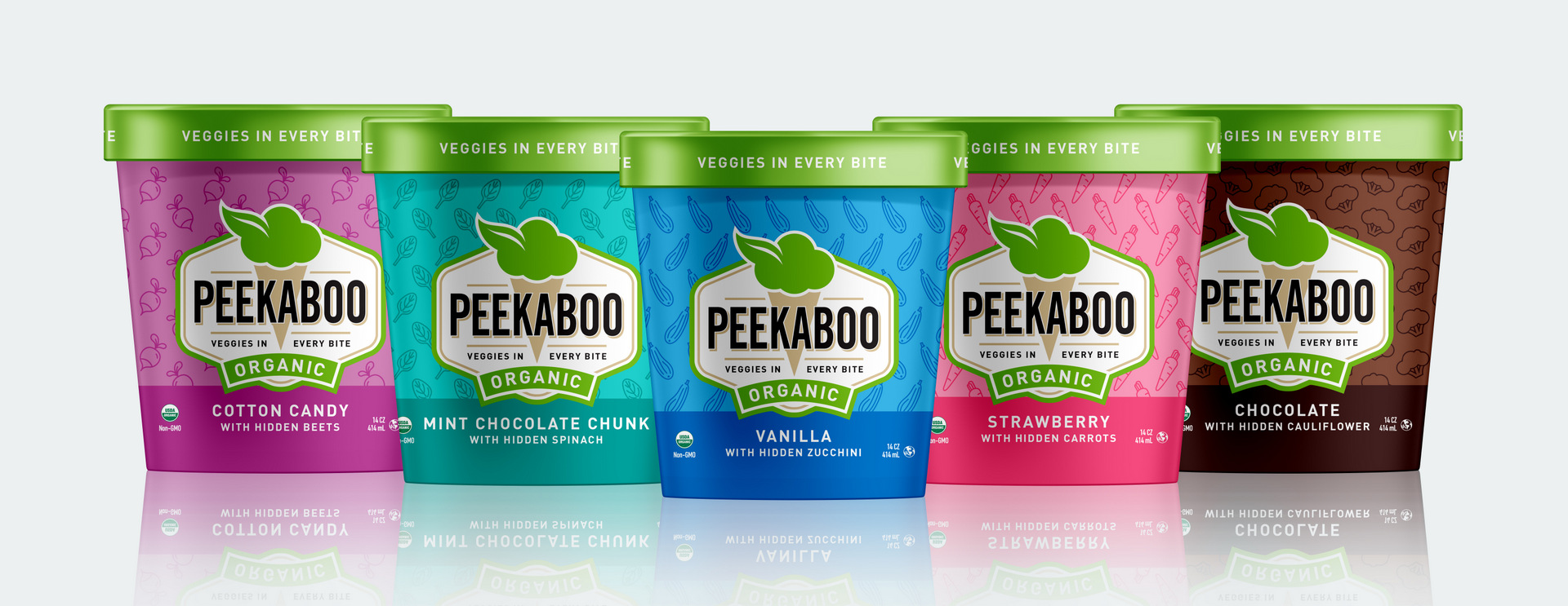 Jessica Levison, Founder of Peekaboo Organic Ice Cream, is also the owner of Miami’s Serendipity Creamery, known for its unique and artisanal sorbet and ice cream combinations. A mother of picky eaters, Jessica was fed up with the ‘eat your veggies’ argument night after night. Determined to win the veggies war with her small children and armed with the knowledge of how to create delicious ice cream, Jessica began experimenting with hiding veggies in her kids’ ice cream and perfected the consistency, taste and veggie pairing in each signature flavor. After receiving rave reviews from both kids and adults alike, Peekaboo was born. Peekaboo Organic Ice Cream currently offers five tasty flavors with varying equivalents of veggies per 14 ounce containers, including: