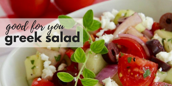 “A yummy and low-fat Greek salad recipe. You can use two green onions instead of the small red onion, if you wish.”