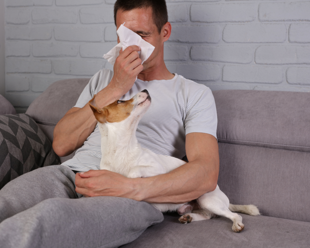Dust allergies are on the rise. The symptoms of a dust allergy include sneezing, coughing, and itchy eyes. It can also cause asthma-like reactions. Dust allergies are caused by an allergic reaction to tiny particles in the air that come from things like carpeting or upholstery fabrics, dander from pets such as cats and dogs, household mites and mould spores.
