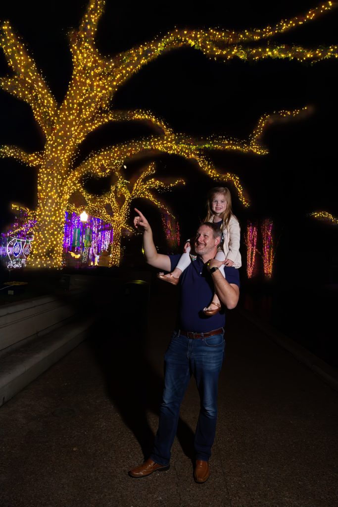 In addition to fan favorites, there are several new Zoo Lights features this year. They’ve added more large animal lanterns along the path, including elephants under the oak trees at the reflection pool, monkeys hanging from trees, and giraffes peaking around corners in the African Forest. The Children’s Zoo plaza is transformed into a dance floor with moving lights in sync with holiday music. The dance floor is for all ages, but it’s been especially popular with the kids.