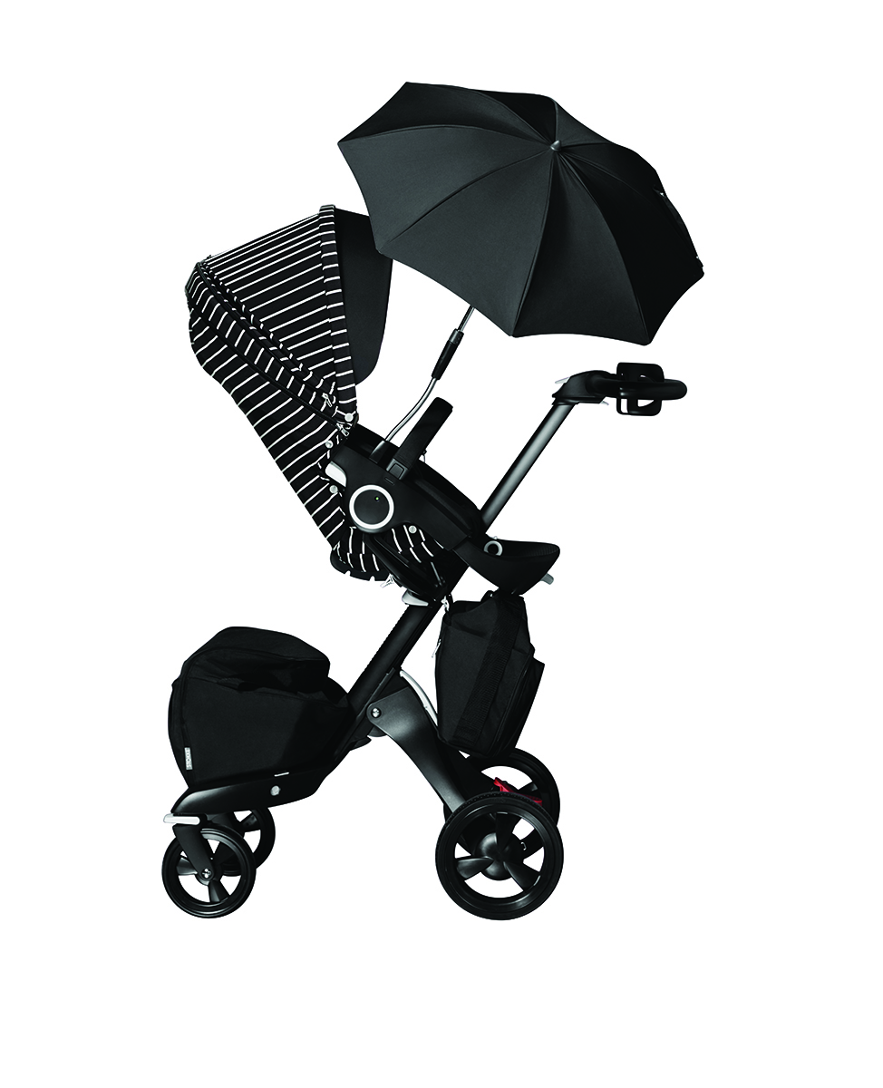 Combining function and fashion, this True Black Xplory Limited Stroller handles rough and uneven surfaces while the two easy swivel front wheels make for seamless maneuvering in tight spaces. Available for $1400 exclusively at Neiman Marcus.
