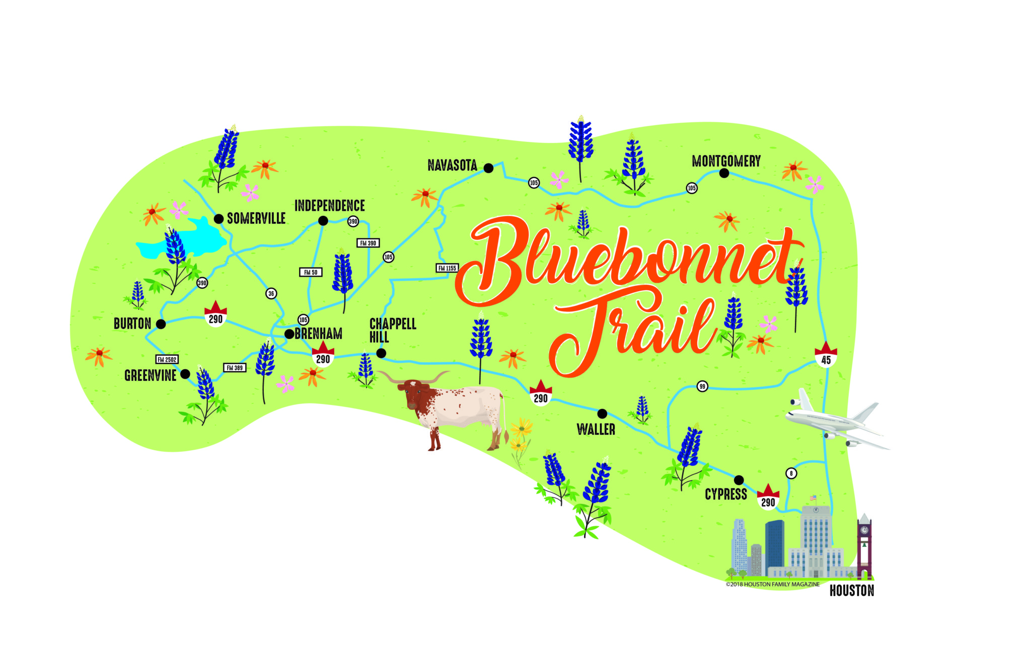 Follow the Bluebonnet Trail: Hunt for the Perfect Pic! graphic by Casey Johnson, Houston Family Magazine
