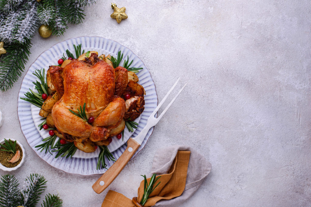 Instead of covering your turkey with butter to make it taste good, keep the skin on while cooking and use a little bit of lemon juice. Once the turkey is cooked, remove the skin. These changes will get rid of unwanted calories but the turkey will still be juicy and tasty!