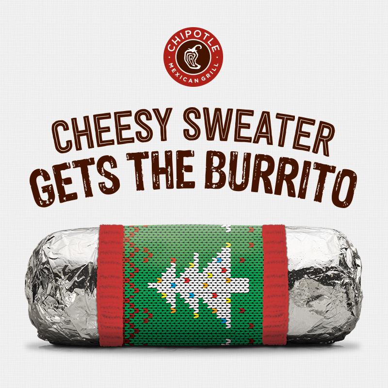 BOGO Free Burrito at Chipotle if you wear a cheesy holiday sweater
