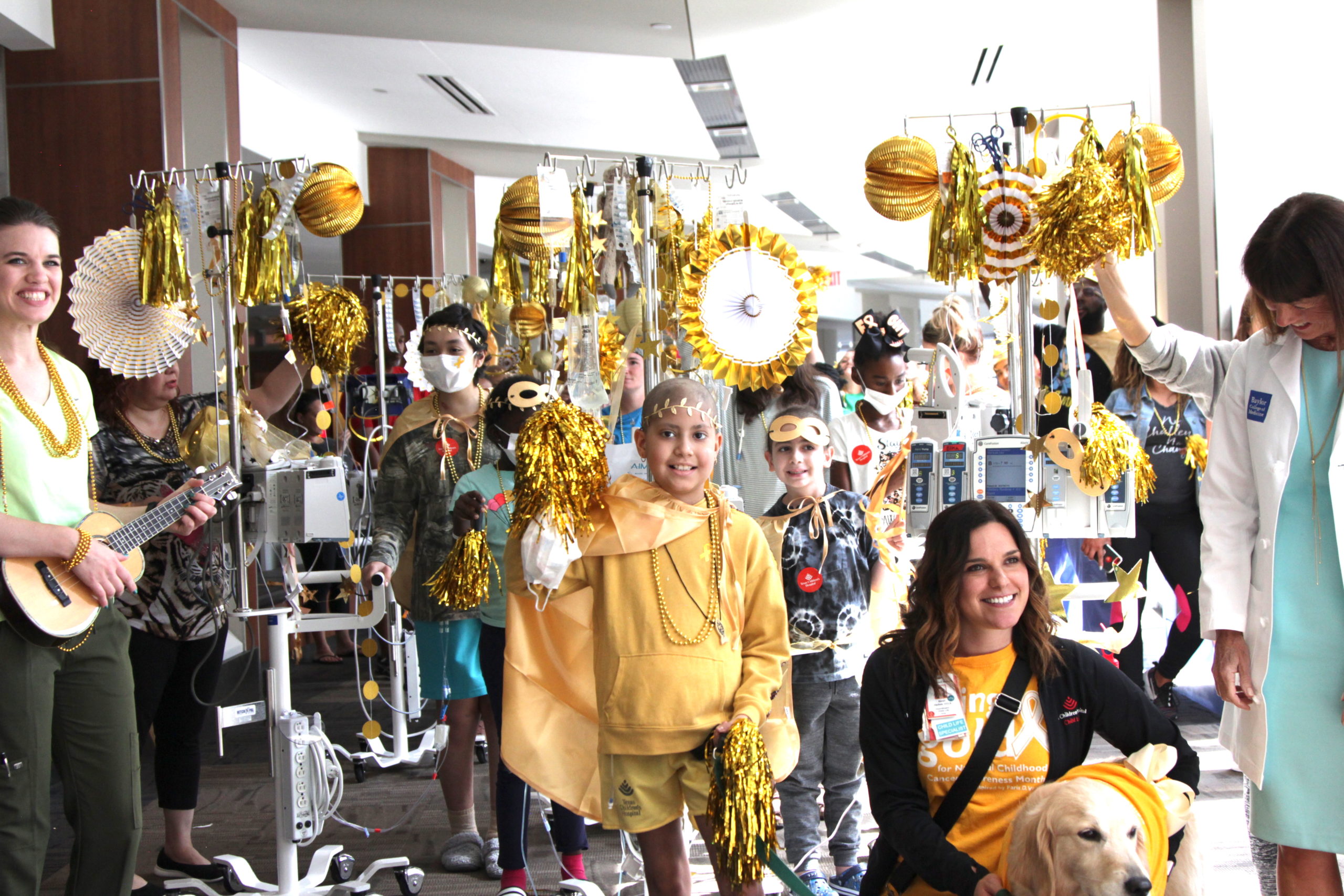 The Foundation honors and recognizes children and families affected by childhood cancer through its series of signature September celebrations at children’s cancer centers, including Texas Children’s Hospital and The University of Texas MD Anderson Cancer Center. In years past, these celebrations have consisted of gold parades at hospitals, art parties and talent shows. This year, in order to address the increased isolation children and families in cancer centers are facing, the Foundation has adapted its celebrations to include a socially distanced carnival for inpatients. And the delivery of individually packed kits with golden craft supplies to facilitate a personal gold party for each child and family.