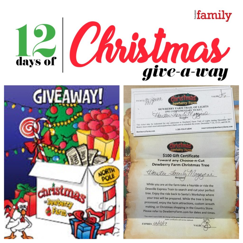 Day one of Houston Family Magazine’s 12 Days of Christmas Giveaway brings us Christmas at Dewberry Farm, Houston’s most popular country Christmas destination.
