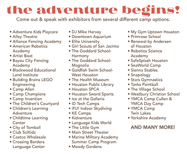 Houston Family Magazine’s 22nd Annual Camp Fair Dates: