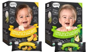 NOSH! munchables organic rice snacks are made with USDA-certified organic ingredients and are free of gluten, tree nuts and dairy! Available in Broccoli, Pear and Kale, Strawberry-Beet, Banana and Mango, and more. Pack of 6, $20. Luv2nosh.com